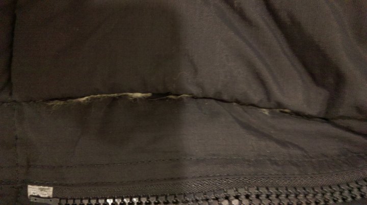 但是在第1和第二層拉鍊之間的縫布有瑕疵 出現內裡外漏的情況