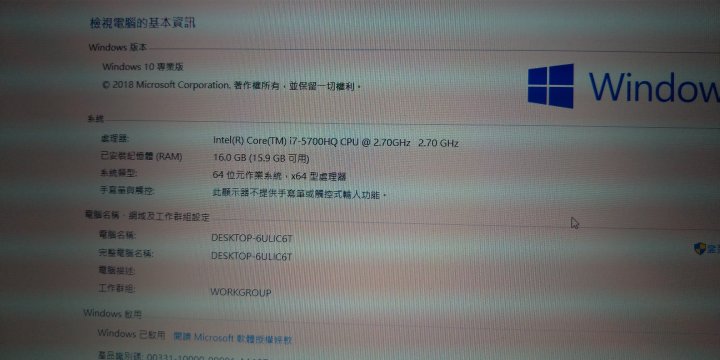 圖片中win10 專業版,已於3/19 已將系統重新灌回win10 家用版。