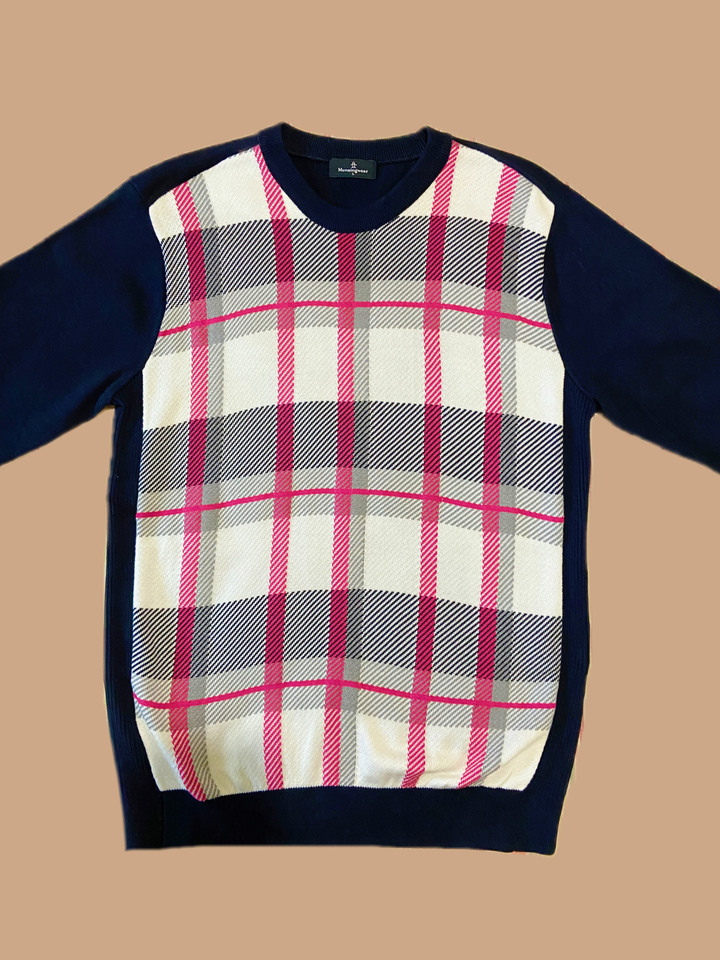 企鵝牌 專櫃男裝Munsingwear 秋冬款 保暖 長袖 圓領 格紋 長袖 套頭毛衣 針織上衣 針織毛衣