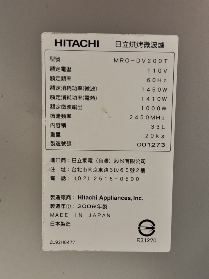 日立 HITACHI 烘烤微波爐 DV-200T 日本製造