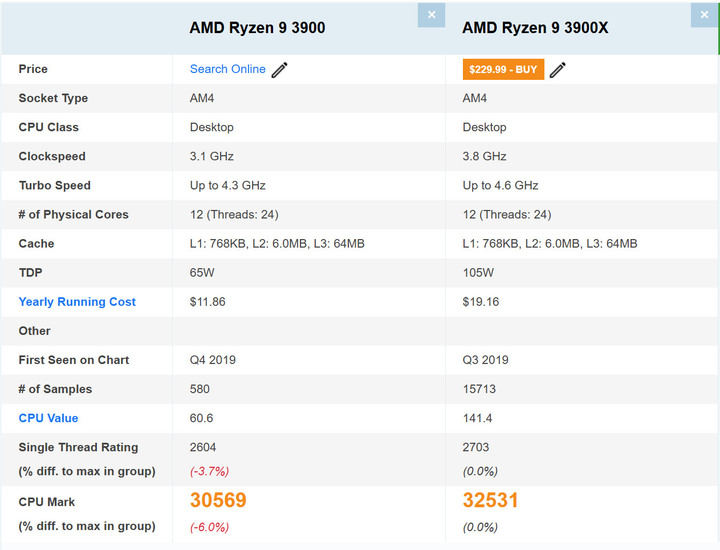 相比於Ryzen 9 3900X,它保留了12核心24線程、6MB二級緩存、64MB三級緩存、