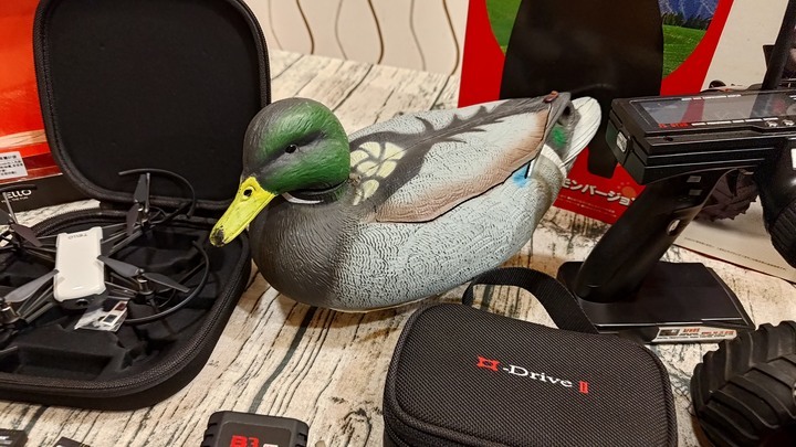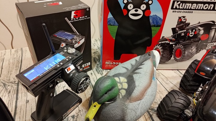 Tamiya 田宮大腳車與鴨子含獨立接收機,共用同一支2.4G 數位槍控。遙控鴨是小弟DIY做的,鴨頭可隨轉向轉動,像真度佳。採用噴射動力與水冷馬達與變速器,螺旋槳不外露較不易絞到水中雜物,使用槍型遙控器,直覺操作。含兩顆鋰電(大腳與鴨子共用電池),分壓充電器,全新25公斤金屬齒伺服機(可自行更換大腳轉向用),以上功能正常,能台中當面測試交易者佳,價格可小議。