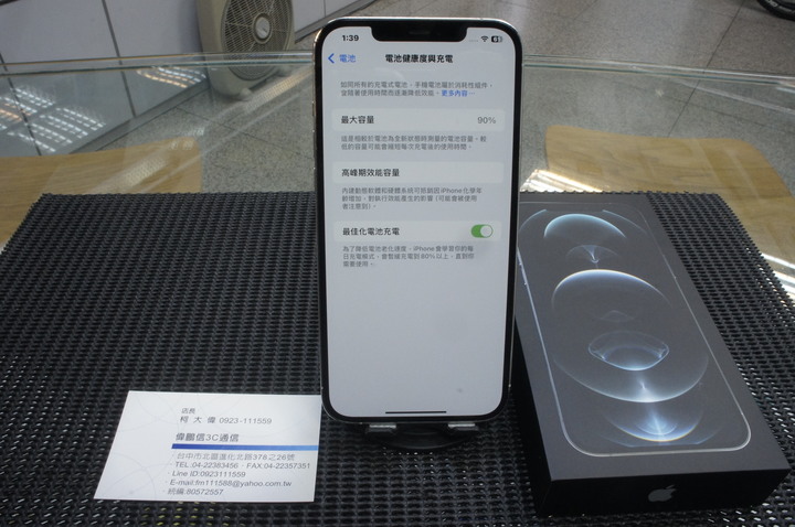 iphone 12 pro max 256GB 台灣公司貨盒裝白色,原廠電池健康度90%