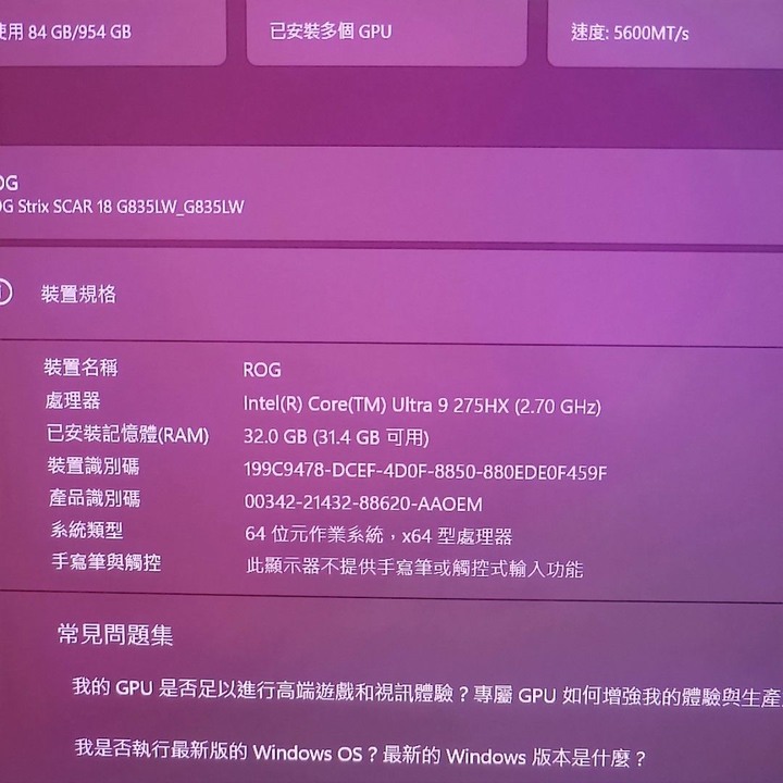 已售出 ASUS G835LW 18吋2.5K電競筆電 (Ultra 9 275HX/GeForce RTX 5080 16GB/32G/1TB SSD/MINI LED)