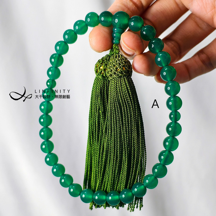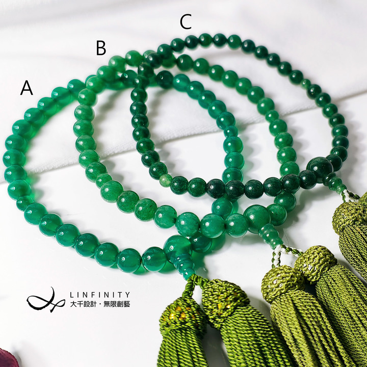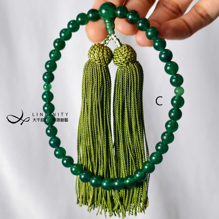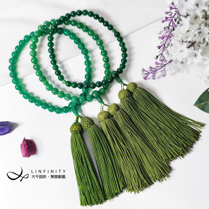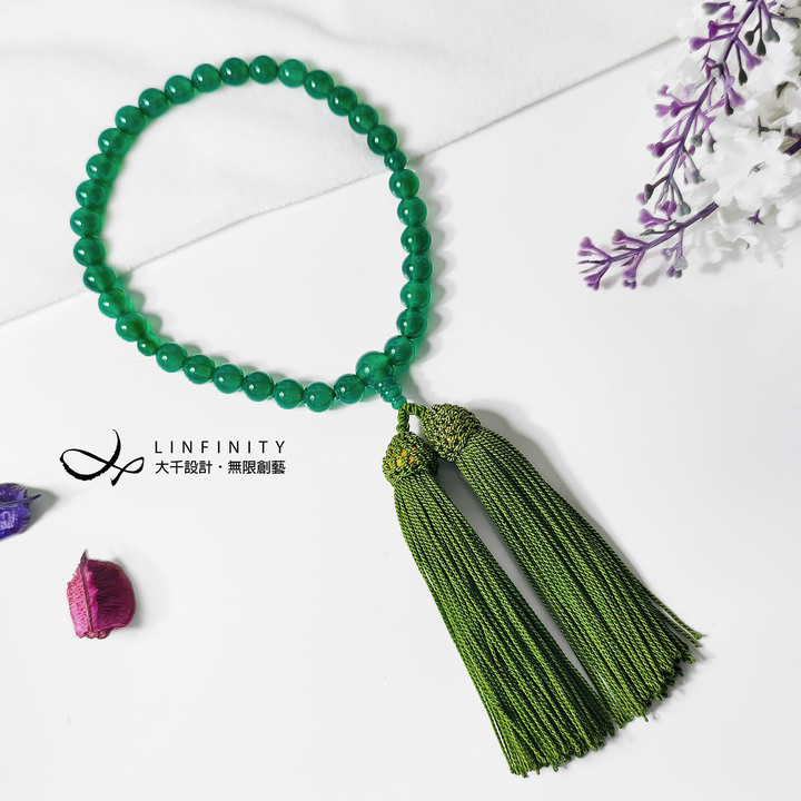 材質:天然綠瑪瑙、東菱玉、正絹(蠶絲)、人絹(再生纖維)