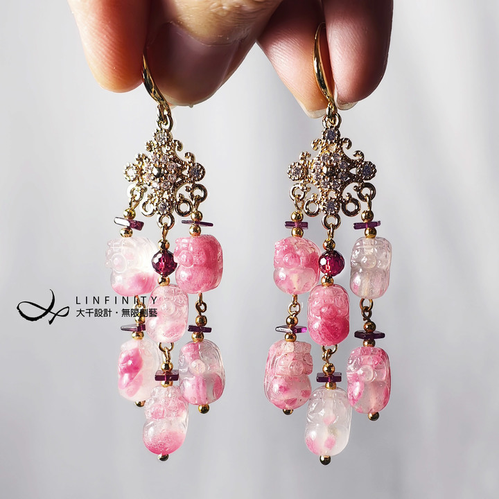 尺寸:櫻花雨貔貅高約9.5-11.3mm,總體含耳鈎總高約7cm,寶石重量重,不建議改夾式。