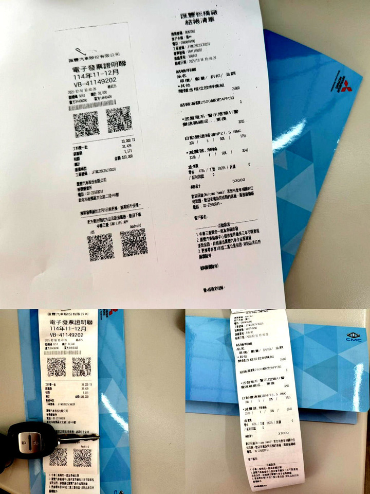 原廠匯豐三菱保固1年2萬公里附維修保養明細發票