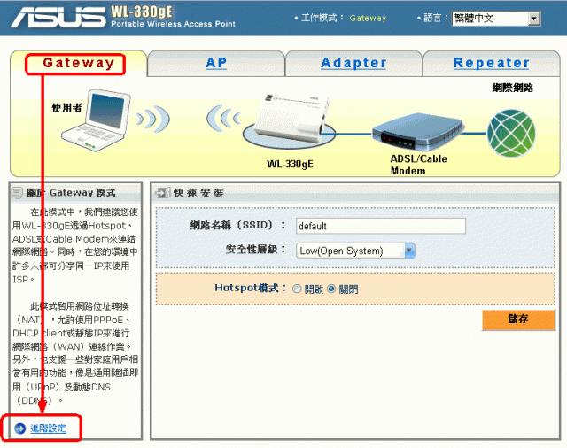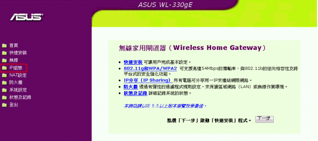 小弟目前家中的無線網路是使用WL-330gE無線網路基地台(AP模式),