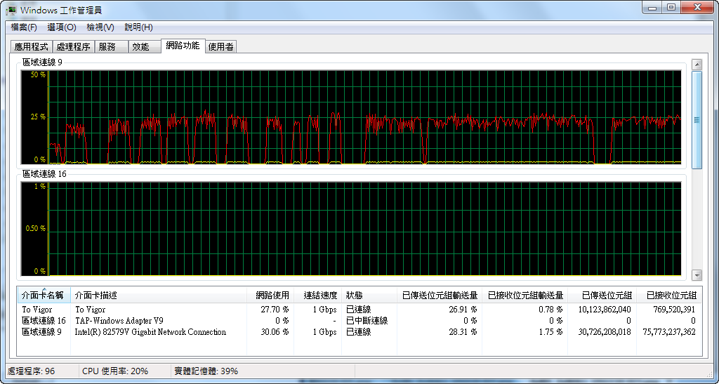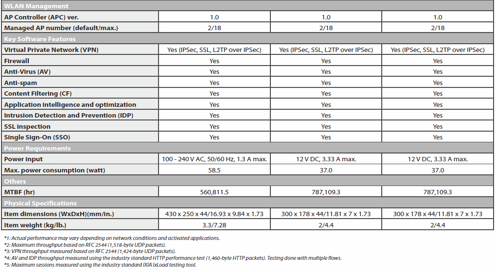 測試正式開始,首先測試的是最基本的Firewall + NAT轉換效能,測試時預設是同時開啟了Firewall (Security Policy Control) 及 ADP (Anomaly Detection and Prevention)偵測功能由以下結果可看到在開啟Firewall的情況下 WAN-LAN 的NAT轉換效能約為940Mbps,應足以應付時下流下之1,000M光纖上網。再來就是測試 QoS (BWM, Bandwidth Management) 的表現,以下分別是把QoS設定在200Mbps、400Mbps、600Mbps和800Mbps時的限速效果,由結果看來USG-110都能把速度限制在指定的數值上。看過了基本的NAT效能及QoS表現,接著就是我最關心的一項性能指標,L2TP over IPSec VPN performance.很多廠商在VPN規格裡所標示的VPN性能也是IPSec VPN性能,但我最常用的卻是L2TP over IPSec VPN,而由於處理的複雜度不同,L2TP over IPSec VPN的效能往往要比IPSec VPN低很多,兩者的效能差距有的甚至可達30%~50%之多。從以下測試結果來看,USG-110的L2TP over IPSec VPN效能約在260Mbps,表現尚算滿意,基本能滿足我日常之使用需求。這次的USG-110比上一代的USG產品之其中一項改進就是SSL VPN新增可支援Apple Mac OS X,我的MacBook Air日後也可多一個VPN選擇了。由於ZyXEL並沒有公佈USG-110的SSL VPN效能,而事實上很多廠商,如Cisco、SonicWALL和WatchGuard等也不會在非SSL VPN專用型號標示出清晰的SSL VPN效能,既然如此,就唯有自己動手測了。一測之下,結果有點小驚喜,速度能達到50Mbps,效能居然較目前正在使用,也屬同級的FortiWiFi-60D和90D還高出一點,算是意料之外。