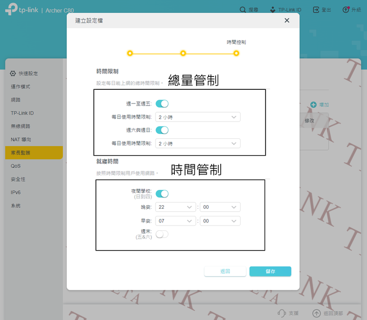 比如說可用設備的 MAC Address 設定每一天只有 PM 0700-PM0800 可連上 Internet .