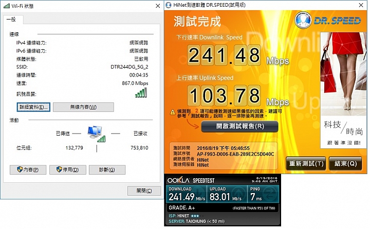 notebook18k wrote:蓮蓬頭大是用Media...(恕刪) 之前會用Media Bridge模式連DTR-244DG 是因為手邊沒有無線網卡可以測速 所以就這樣連...DTR-244DG沒有無線橋接的功能的樣子...(有錯請修正)後來另外買了ASUS USB-AC68來測速兩台都是直接接小烏龜PPPOE撥號測速的 印象中 兩台取得的IP幾乎一樣 頻道有錯開 不過...我家2.4G蠻多人用 干擾其實有點嚴重...之前區網對傳 N18U有跑出比DTR-244DG 5G 還快得速度 不過當時忘記拍圖...