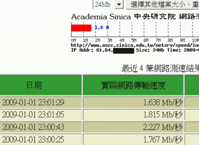 ctcbj wrote:樓主都沒把照片放上來...(恕刪) 其實已經貼過圖了。上傳過去開45k都沒有問題,即使把上傳減小為5k也一樣。其實,如果電腦已經裝cfosspeed,上傳設定滿載也不會受到影響(因為軟體會自動調整)。過去我家裝別家 256k/64k ,裝cfosspeed,上傳設定 8K,下載一樣達240k,還可「邊聽網路廣播,邊瀏覽網頁」,但是換了 so-net 就不行,只能「二選一」。hinet到我家的檢測人員已經表示,應該("應該"兩字是我的客氣用語)是 so-net 私下任意減用戶頻寬。