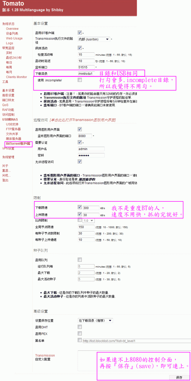 L大可以分享一下你的BT設定..(恕刪)