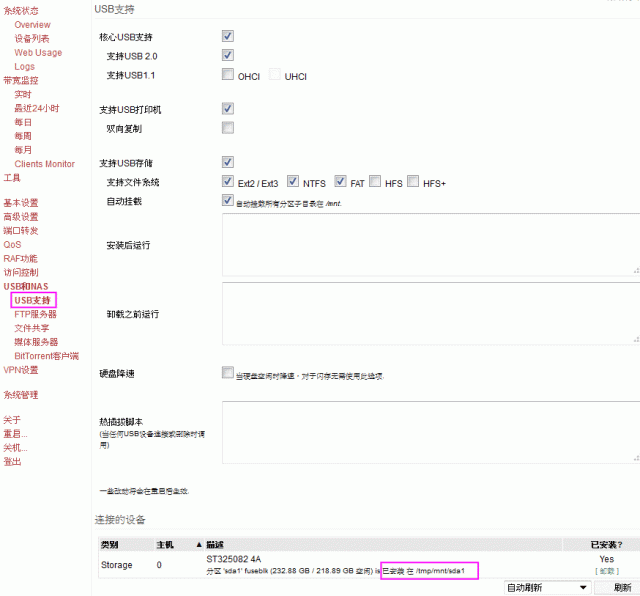 我的Tomato刷完後想單純的掛一個硬碟給家用網路裡面成員當分享碟