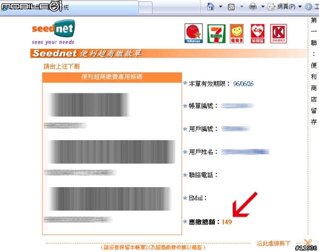 信件時間是6/15 晚上11:11:11(這時間真是故意的?)回到家是6/16凌晨1點左右收了信想了幾下2:50a 2:55a 把FON兩個帳號都買了,價格均為$1496/16晚上8:40p把凌晨買的繳費單檔案寄給朋友,請他在公司幫我印(我家沒印表機... )他在8:45p左右去收了信也買了,價格也為$149