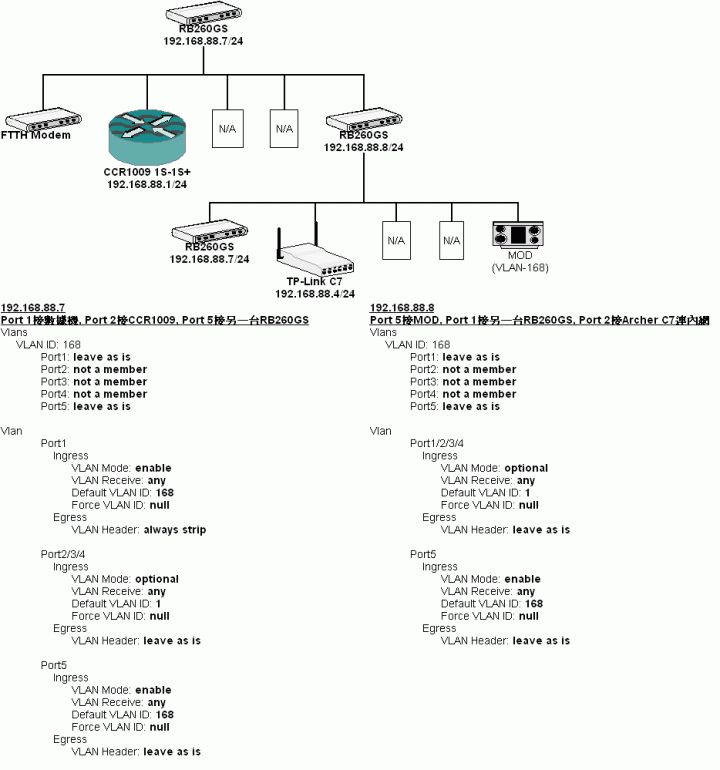註:192.168.88.8這台是現行已在運行的switch,所以基本上目前列的設定是不會變動才是,