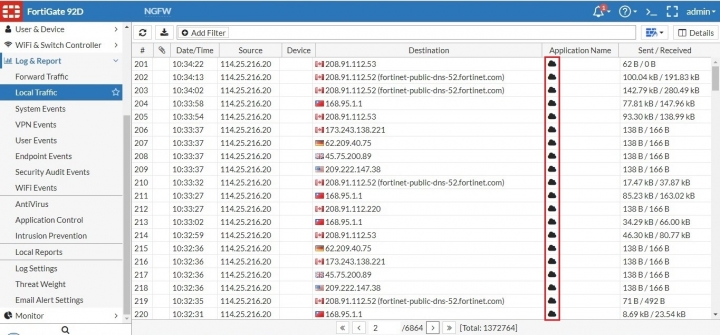 在Log & Report的Local Traffic裡面的Application Name欄位只顯示一朵黑雲,看不到文字,