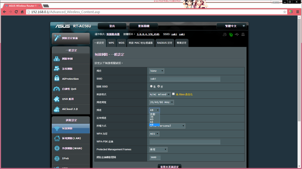 AKSN74 wrote:看來這台對於部分手...(恕刪) 我覺得不是相容性問題,不知道是機器哪裡的機制問題。我目前是用 Asuswrt-Merlin,過去我刷 Tomato 測試時,測試結果跟這篇 RT-AC56U 2.4GHZ Issues fixable? 的 18 樓一樣,明明 2.4G 訊號強度都比 5G 好,但會強制在 legacy 狀態,因而連線出現問題,原因不明。不管手機平板還是電視電腦(我家桌電也用無線)以 2.4G N 連線 AC56U,這台我測試只要在頻道寬度 40MHz 的情況下必定狀況百出,只有在 20Mhz 的情況下稍微穩定。但 20Mhz 的情況下,若是網路近全速跑一段時間後(我家目前是 60M,這幾天會換成 100M),可能會發生突然降速情形,然後連機器端的 192.168.1.1 都 ping 不到,過段時間才又恢復。若設定為 20/40Mhz,機器必然自動鎖在 20Mhz。傳說最穩定是 b/g + 20Mhz lol.不過 Merlin 也是建議調到 20Mhz 因為有些他不能解決的問題,畢竟 wireless driver 是閉源的他表示無可奈何。雖然能連 5G 的裝置都連 5G,只是有些裝置只能連 2.4G,上述問題造成各種困擾。xD不過這台的 5G 非常好,穿牆也很強大,放在客廳我在自己房間用電腦跟手機都超快。