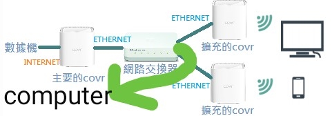 TNT_JOHNN wrote:你好~想請教一個問題如果我在後面switch上插電腦可以嗎?還是說經過的主covr後的switch只能接Covr1100呢?....因為每間房間只有兩個網路孔設備太多不是很夠用..... TNT_JOHNN 大大 您好:1、主要的covr後面連接的網路交換器可直接連接電腦使用。2、請問您住家空間是出租套房使用嗎? 因為我看你有申請三台MOD使用。總共會有多少台有線無線裝置需連線上網呢?由於COVR-1100為家用的mesh產品,可能需要您詳細說明使有哪些裝置、會執行哪些服務應用程式。我們再給您合適的建議。謝謝~/KiKi