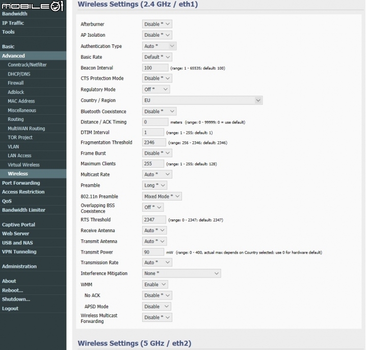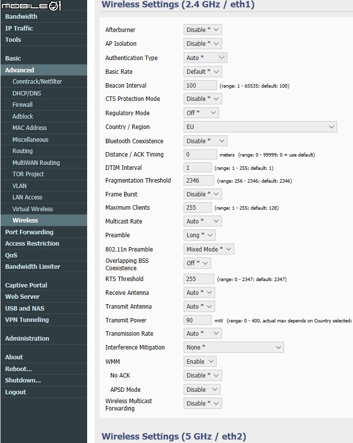 WiFi個人建議用EU(歐盟)規格.遵從發射功率規範不得超出百mW.於是乾脆設90mW.