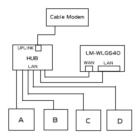 假設現在有A~D四台電腦,其中一個真實IP要給無線分享器用