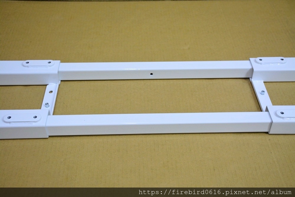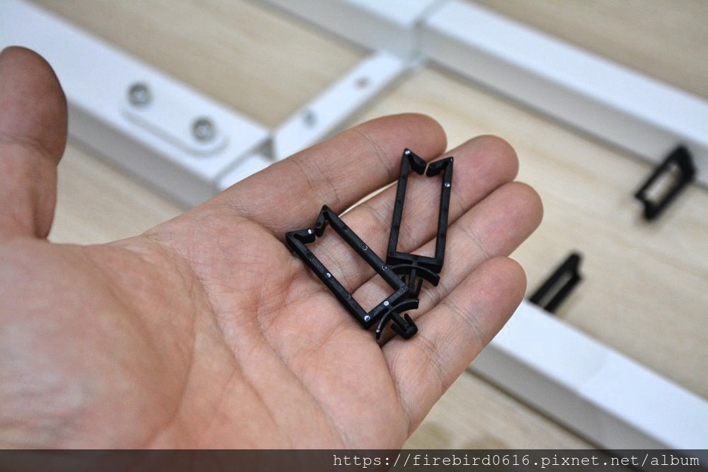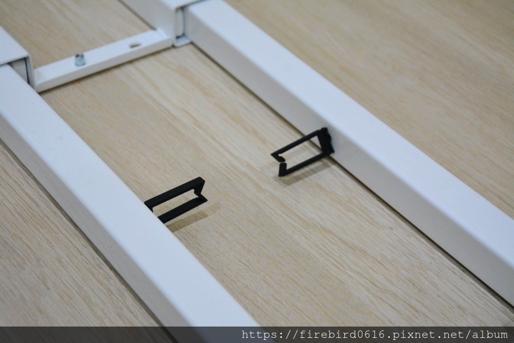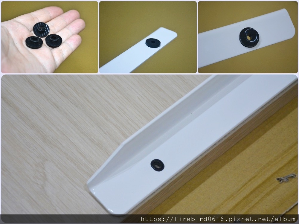 桌板固定架每邊三個橢圓孔,是用來組裝橡膠墊片,增加桌板與邊框的緩衝,也讓後面鎖上自攻螺絲更穩定。。