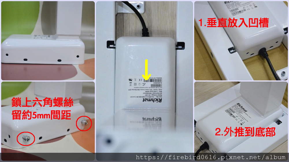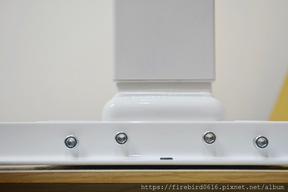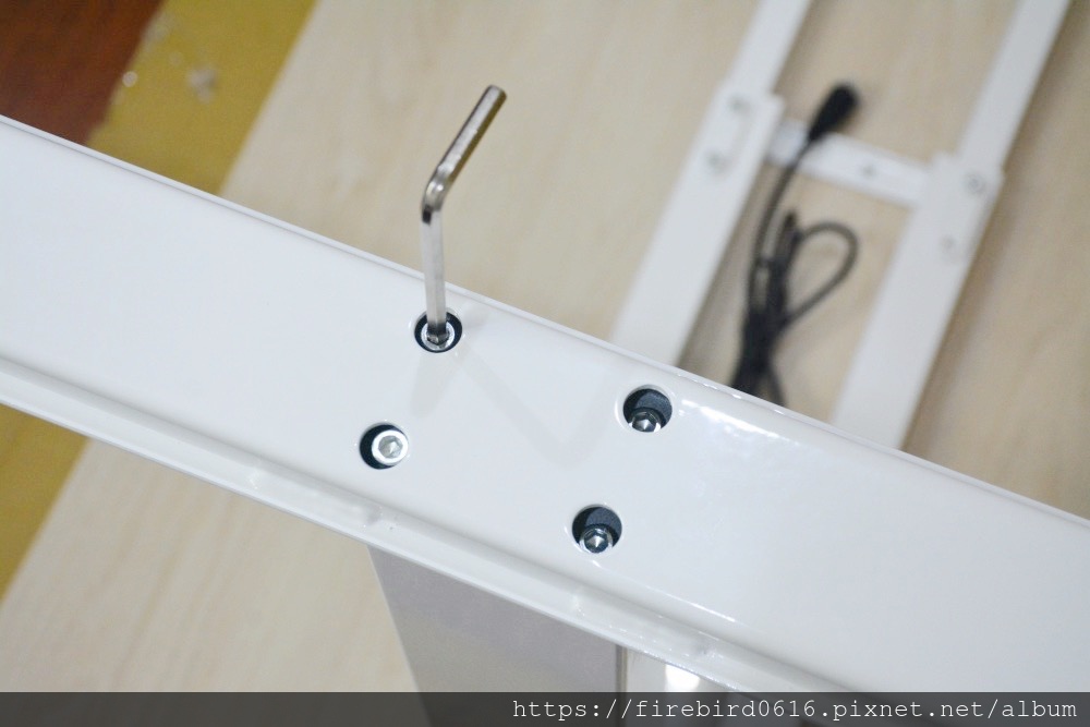 桌架左右兩邊都可以固定,而且左右邊螺絲孔位呈現對稱,不論是固定在左邊或右邊,個人建議電源插孔朝外,這樣插頭可以沿著升降柱插壁插,走線不會繞太長。