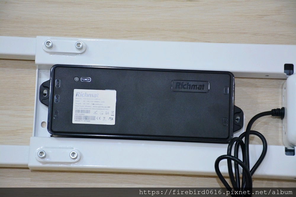 這個黑盒子是馬達控制盒,品牌Richmat,使用100~240V國際電壓,輸出DC 24V / 3.5V x 2,所以每邊84W,運作時最大瓦數約168W。