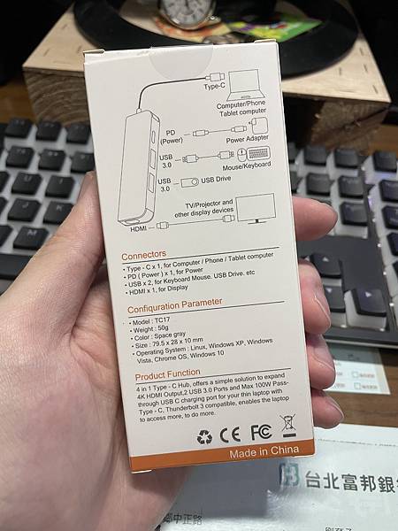 那今天YC買的這個是給擁有USB Type-C孔的電腦使用的