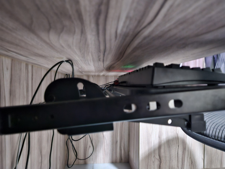 2024/7/16 也到貨,1. 說明書不是太清楚,組裝的時候還遇到零件感覺不夠長的情況,結果是要先放鬆調節器後才能順利安裝(說明書沒有提到要放鬆)2. 組裝完成上桌之後,發現滑軌是自然往後方下垂,意思是它會隨重力漸漸的縮回去,使用時雙手一定會放在承重架上,所以理所當然的會往回縮現在找了一個方法,使用時在滑軌處卡一個東西讓它縮不回去,再用看看。整體來說不太推薦。