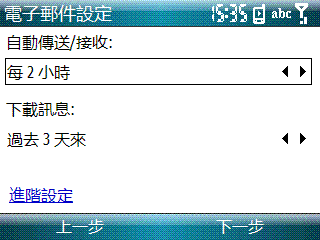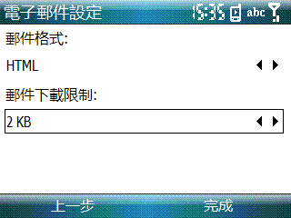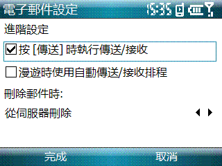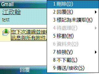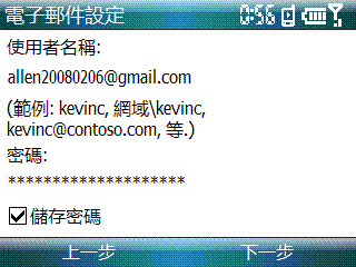 ESQ wrote:江董的細心跟詳細解說...(恕刪) 1.像您第一頁有介紹狠多軟體 這些軟體下載完之後是ZIP檔案 從電腦裡用藍芽傳進去手機後 要怎樣安裝呢?簡單來說,下載後的檔案解壓縮,裡面會有CAB檔,把他丟到手機記憶卡裡面去執行,就可以安裝了如果要深入一點的話,請參考Darren Lin大大的[Step by Step 基礎教學] 將 .CAB 檔案複製到手機中安裝 (15)以及[Step by Step 基礎教學] 目錄多爬文,保證馬上學會2.再設定email那段 本身是用gmail 都跟著您的步驟去做 可是可是..在send and receive那邊就一直顯示connecting... 然後就出現error 不知道您有沒有gmail設定教學@@..剛剛測試一下GMAIL,一樣步驟,一樣正常,以下是圖片給大大參考,裡面的設定跟一般的都一樣會不會是大大在網路設定部分有問題?在手機『附屬應用程式』裡面,有個『NETWORK WIZARD』,進去後國家選擇『TAIWAN』,電信業者就看大大的服務商,之後按確定讓他RUN,重開機就可以了3.把圖片 檔案 音樂從電腦傳進去手機 似乎都是存在手機的記憶體內 不是記憶卡內 有辦法設定透過藍芽收到的東西都是直接存在記憶卡內嗎? 還有要怎樣把檔案轉移到記憶卡內呢? 找不到選項@@我記得可以設定,好像是修改登錄值,不過我忘了.........4.要從哪進去看手機記憶體剩下多少以及記憶卡記憶體剩下多少?(今天Q9h有不定時的出現 手機計憶體快滿了的訊息..)要看還剩多少記憶體,一樣在『系統工具』內,選擇『記憶體管理員』,按下去就會顯示了至於『系統工具』裡面,選擇『工作管理員』,那邊會顯示正在運行的程式,沒用就把他關閉,這樣手機會比較正常點好希望可以趕快有內建wifi的記憶卡可以使用阿.大大,去辦個3G吃到飽,就可以隨時享受3.5G上網的好處喔!放上一個重開機軟體,放在記憶卡裡面執行,可以讓你的手機都在最佳狀態喔!附加壓縮檔: 200803/mobile01-89a9aa73fabe820921b3b2cb8b81569a.zip