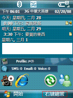 江董的細心跟詳細解說真的太優質了!!在這跟您大感謝!!由於是wm新手 所以狠多東西都不太會使用想在請教一下1.像您第一頁有介紹狠多軟體 這些軟體下載完之後是ZIP檔案 從電腦裡用藍芽傳進去手機後 要怎樣安裝呢?2.再設定email那段 本身是用gmail 都跟著您的步驟去做 可是可是..在send and receive那邊就一直顯示connecting... 然後就出現error 不知道您有沒有gmail設定教學@@..3.把圖片 檔案 音樂從電腦傳進去手機 似乎都是存在手機的記憶體內 不是記憶卡內 有辦法設定透過藍芽收到的東西都是直接存在記憶卡內嗎? 還有要怎樣把檔案轉移到記憶卡內呢? 找不到選項@@4.要從哪進去看手機記憶體剩下多少以及記憶卡記憶體剩下多少?(今天Q9h有不定時的出現 手機計憶體快滿了的訊息..)看來分組鈴聲跟日文輸入是暫時無望了好希望可以趕快有內建wifi的記憶卡可以使用阿..!!