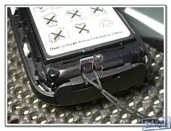 K700i 的吊飾設計是用電池蓋去夾緊,所以只要打開電池蓋就很容易掉下來...就是它,由軟墊板剪下來的塑膠片,10*5*1 mm,用這個小東西就可以很簡單的固定吊飾。使用方法更是簡單,塞進去就行了。凸出來的部份沒關係,蓋子蓋上時就會自己倒下去,完全不會影響到密合度。這樣就不會在換電池時手忙腳亂。
