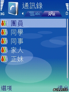 tkna1001 wrote:請問聯絡人可以分類嗎...(恕刪) 完整回答您的兩個問題....1.分組聯絡人可以進通訊錄整個查看叫出,如家人組群按入,可檢視老爸,老媽,老弟,老婆...等家人的號碼2.可以同步....不過這功能我是沒在使用!!!