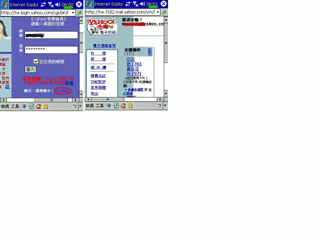 前一陣子幫女友買了dopod SD無線網卡讓她玩連網站上網都蠻順的,可是就是很難登入奇摩信箱大概要試個幾百次才會登入成功一次吧!大部分的時候都是按登入後就又跳回原本要你輸入帳號密碼的畫面我本來以為是PPC本身內建IE不夠強的關係(我女友用的是hp 1940)所以就幫他灌了Net Front來用,結果還是不行我不死心....我在家裏我就用我的2210插上USB和電腦連線....可惡!不管是內建的IE還是NetFront都不讓我登入奇摩信箱!!請問大大,為什麼會這樣呢?