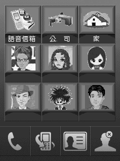 下面四個按鈕分別指向:電話、新增簡訊、iContact、刪除大頭貼