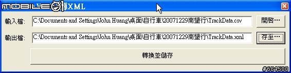 這支程式可以將705D的CSV檔轉成XML檔,而另外放上的XMLPathReader.html檔可以讀取該XML檔顯示路徑~