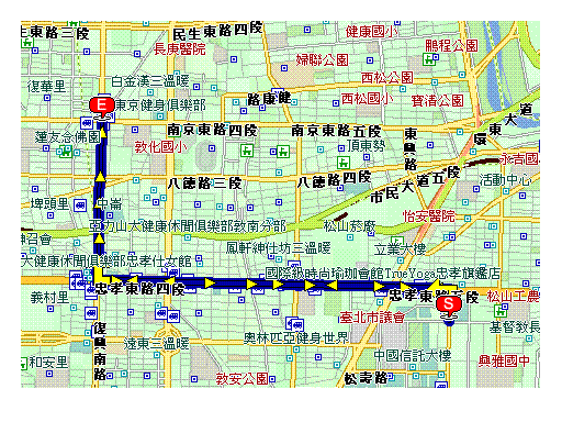(2)松高路直走-->逸仙路右轉-->忠孝東路左轉-->復興北路右轉-->目的