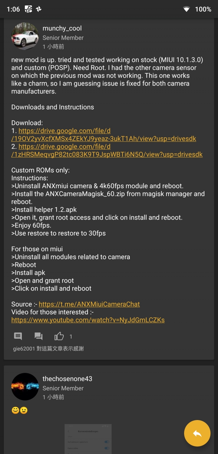 看到米8有960fps慢動作後就心癢癢剛好看到有模組可以玩原文:https://forum.xda-developers.com/poco-f1/themes/port-t3879357/page12裡面有什麼就自行研究,方法都在第一頁大概教一下首先你的F1必須要有Magisk然後去下載他的壓縮檔zip載完後去Magisk裡面安裝後重新開機就會看到app但剛開始你點選它會閃退,必須去應用程式裡面給予它所有的權限才能開啟祝各位都能用P.s下次開發版更新可能會有4k60fps錄影