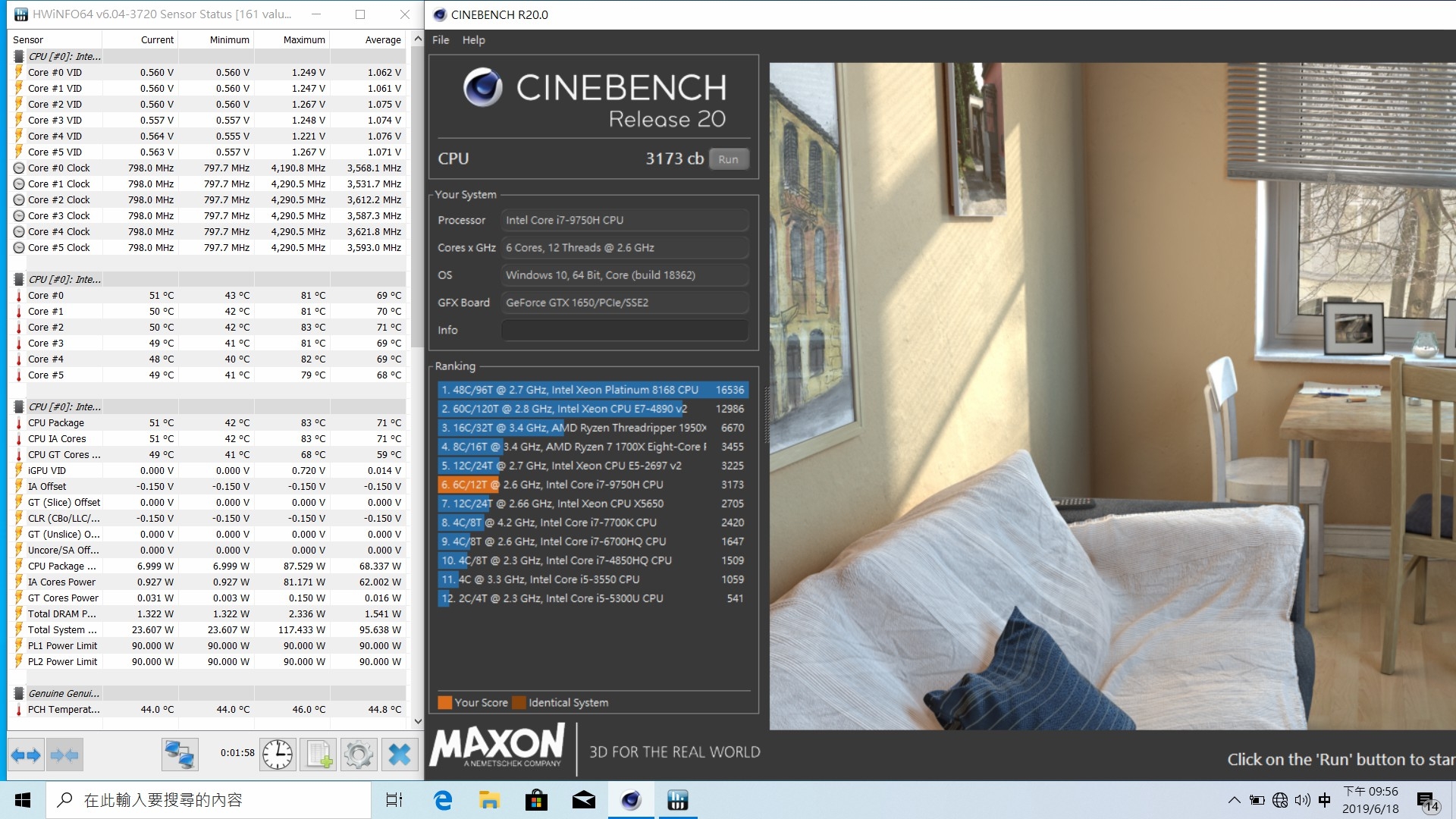 R20的測試,3173CB的跑分,最高溫度83度C,甚至比很多跑2500CB左右筆電的溫度還漂亮