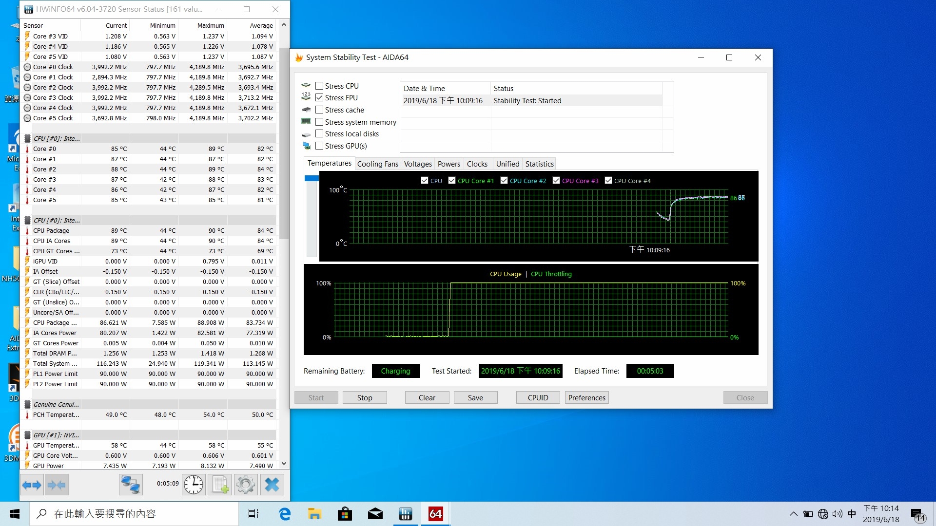 還是燒個10分鐘吧,看看液金的幫助有多大,最高溫度只有到86度C了