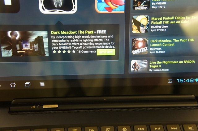這是一場很緊湊的體驗會,因為有四段內容很豐富的簡報,讓大家對Geforce 600M系列獨顯,四核心Tegra 3處理器的功能、特性,現場供體驗筆電的效能,以及HTC One X、Acer M3 Ultrabook、Acer ICONIA TAB A510三項體驗產品,有更進一步的認識與了解。另外,現場總計10台的筆電、智慧型手機、平板電腦,也是我參加過類似活動中,遇到體驗產品數量最多的一次!不過,也因為可以體驗的產品多,但時間、產品又有限的情況下,只能以輪流的方式,提供坐在各組的參加者體驗。因此就不知道大多數人是否跟我一樣,只能對自己組別桌上的產品,有多一點的體驗?而後來從別組輪轉過來的體驗產品,就只能先聽NVIDIA工作人員大概的解說,並趕緊拍些照片,做最初步的體驗,這是我覺得稍微比較可惜的部分!如果可以的話,有個小建議,就是之後有類似的活動,不妨可以稍微拉長活動時間,讓大家有更多體驗時間,多體驗認識這些產品。