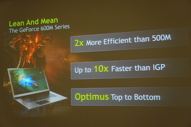 結束Geforce 600M系列簡報前,Alex再次秀出這張投影片,讓大家回憶一下Geforce 600M系列強勁效能。