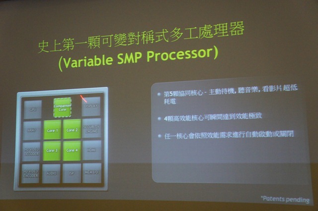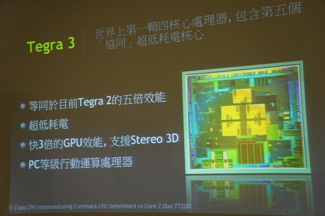 這個部分的簡報,原本是Alex在介紹完GeForce 600M系列後,緊接著介紹的。不過為了閱讀的便利性,我就挪到這裡了。另外,因為簡報的投影片,跟我去年參加的Tegra 3體驗會相同,加上Alex以很快的速度進行介紹,所以關於此部分的簡報,就請直接觀看我的這篇參加心得:【參加心得】四核心來了,NVIDIA Tegra 3疾速行動體驗會。而這篇參加心得裡面,也有當時NVIDIA提供的兩份技術文件下載連結,想要對Tegra 3 處理器技術有更多認識的大大,可以下載觀看。