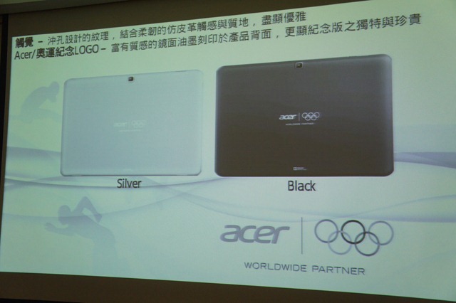 ICONIA TAB A510擁有彷皮革的觸感與質地。由於Acer是今年倫敦奧運的贊助商之一,所以A510的紀念版,也會印上奧運的Logo,凸顯其獨特性與珍貴性。