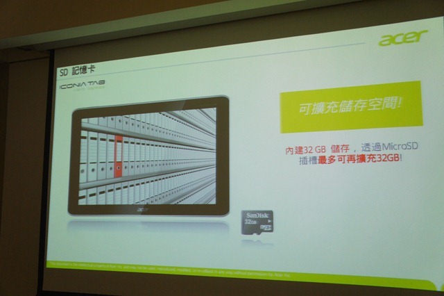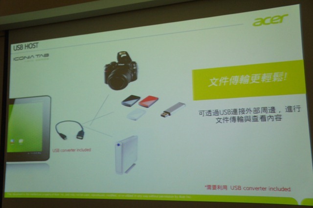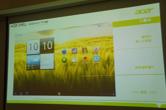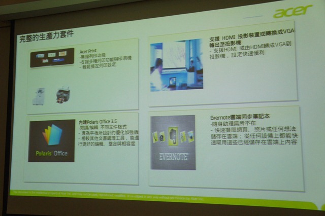 利用這張投影片,劉副理再帶大家快速review ICONIA TAB A510的主要規格與特色。