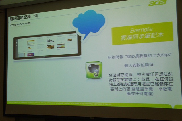 A510也內建許多人熟悉的Evernote雲端同步筆記本軟體,讓使用者可以在A510上存取在Evernote雲端的資料。