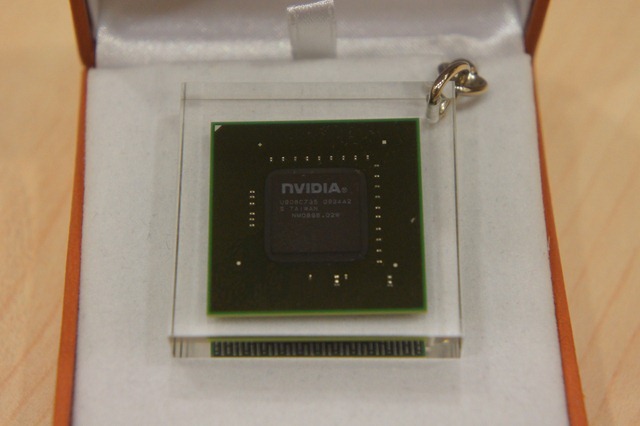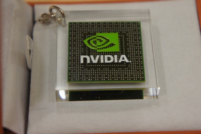 近一點看鑲在壓克力裡的Tegra 晶片正面。