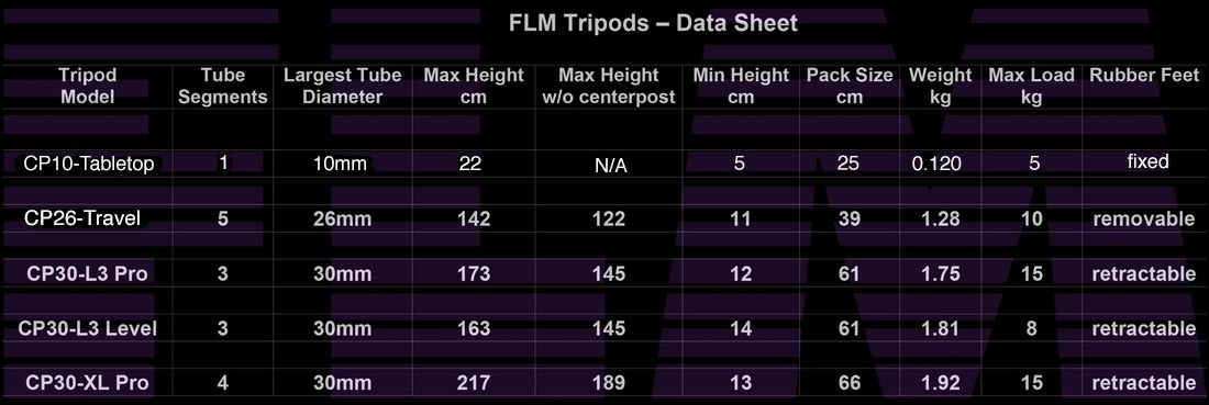 這隻是FLM CP26-Travel,2016年在Indiegogo募資的型號,26代表最粗的腳管直徑約26mm,總共有5節腳管,最大高度約142cm(中柱伸長的情況下),腳架重約1.3kg(不含雲台)。