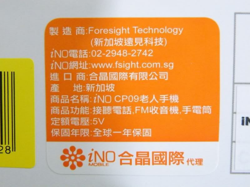 二話不說立刻敗一支送給爸爸~(錢不夠買兩支XD)而且通常會看到標明產地的產品,大多是日本製&德國製等精密儀器強國;而這支機子卻特別標明主機是新加坡製造;由此可見手機公司這產品是充滿信心的!!!(老年化社會來臨
